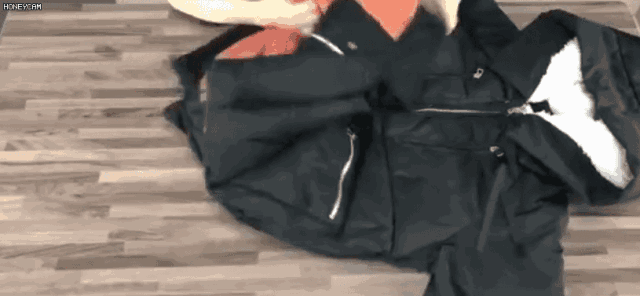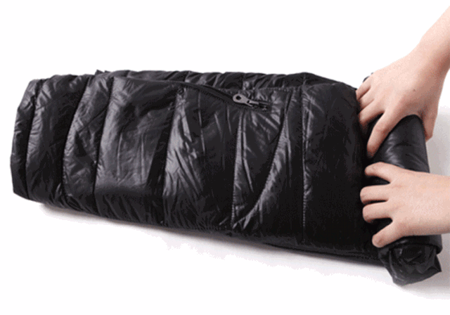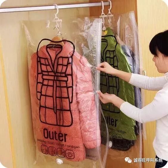 2、如果衣服上面装饰有尖锐的装饰物,或者扣子,拉链等,那最好把衣服反过来叠,以免划破袋子,一般可以放下多件棉服哦!