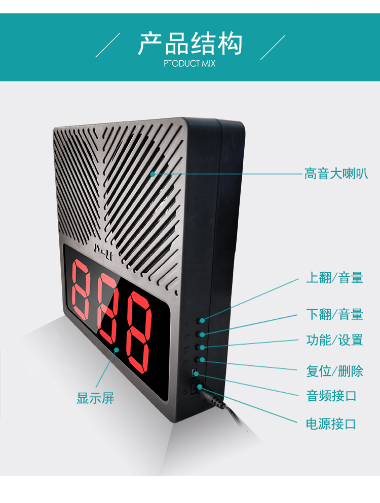 该产品由20W超大音量音响加数字显示接收主机和防水防油无线发射键盘组成。可一个发射键盘配多个音响叫号器主机,实现一个点呼叫多个点,常用在餐厅有转角或是隔楼的情况;也可以多个发射键盘配一个音响叫号器主机,实现多个点呼叫一个点,常用于多个窗口呼叫的情况。